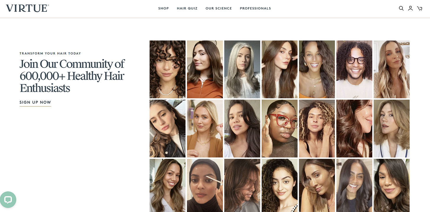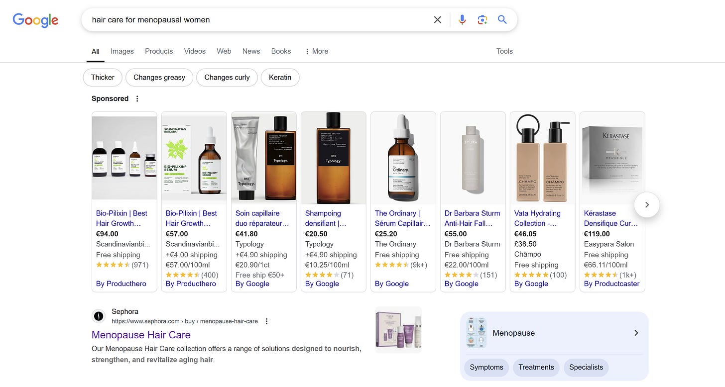 Virtue Haircare leads this charge, dominating searches for “menopausal haircare” by addressing real, unmet needs. Their choice of Jennifer Garner as brand face is strategic: she’s old enough to be credible, yet youthful enough to represent aspirational vitality. And yet, despite this savvy positioning, their website noticeably lacks representation of the full age range they could be capturing. Brands that recognize the power of showing their consumer, not just selling to them, will be the ones that truly resonate.